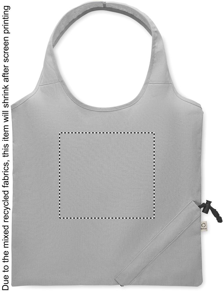 Faltbare Einkaufstasche aus recycelter Pre-Consumer-Baumwolle (70% recycelte Baumwolle und 30% RPET). 140 g/m². Artikel kann nach dem Bedrucken schrumpfen.
