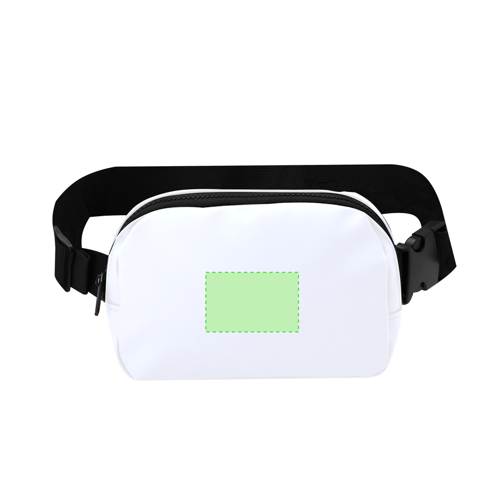 Bauchtasche aus PU-Design. Beinhaltet ein zentrales Fach mit Reißverschluss und einen verstellbaren Gurt mit Schnallenverschluss. Außerdem gibt es eine Rückentasche mit Reißverschluss für zusätzliche Sicherheit.