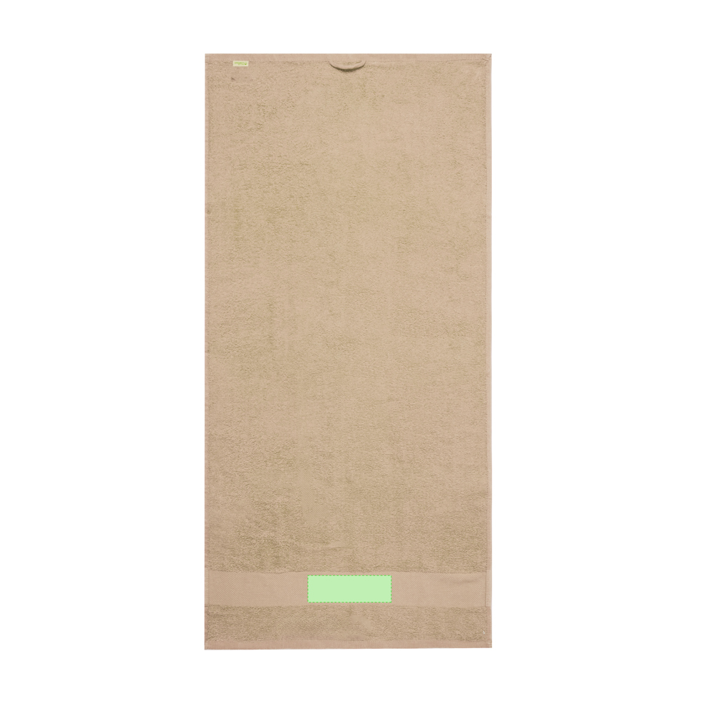 Saugfähiges Handtuch aus 350 g/m2 Bio-Baumwolle. Mit einer Größe von 50x100 cm ist es in einer breiten Farbpalette erhältlich. Mit unverwechselbarem Etikett für Bio-Baumwolle. Präsentiert in einer individuellen recycelten Tasche.