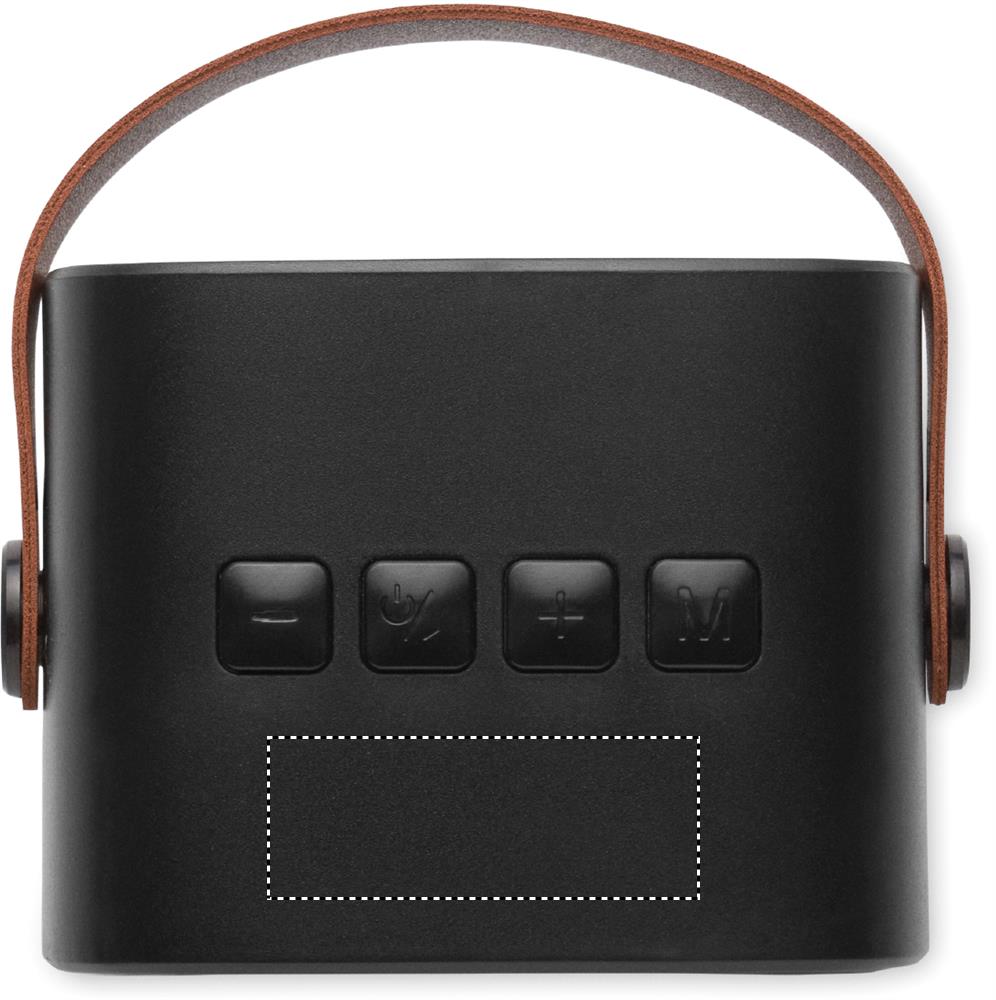 5.0 wireless Lautsprecher aus recyceltem ABS mit PU-Trageriemen. SD-Kartenslot. Inkl. wiederaufladbarer Li-ION-Akku mit 500 mAh und AUX-/USB-Kabel. Ausgangsdaten: 5 W, 3 Ohm und 5 V. Spielzeit ca. 4 Stunden.