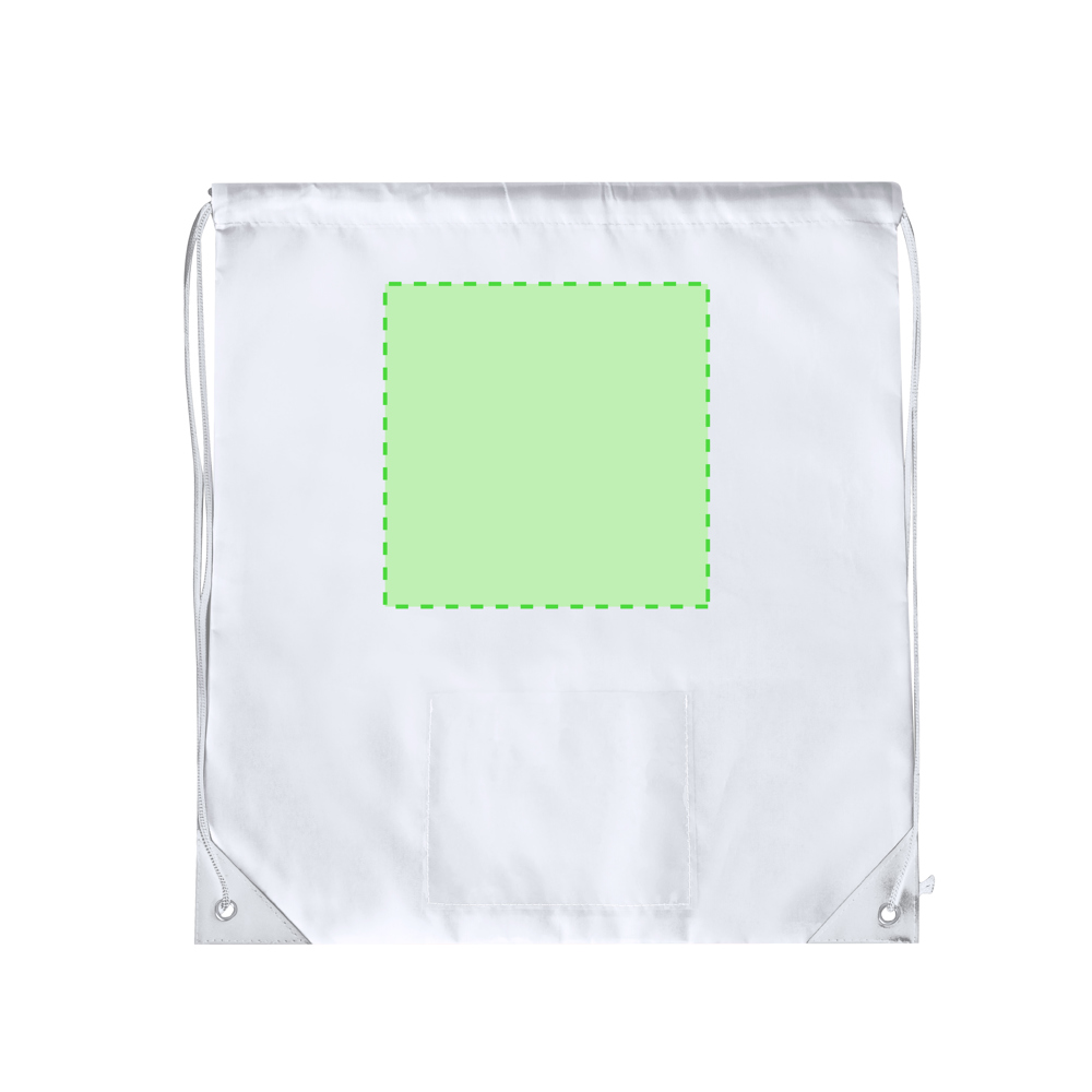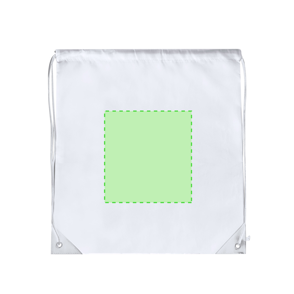 Rucksack mit Kordelzug aus weichem 210D-Polyester. Selbstschließende Schnüre und schwarz verstärkte Ecken mit Metallösen. Inklusive einer transparenten Tasche für die Nummer und in einer breiten Farbpalette erhältlich (weiße Farbe speziell für den Sublimationsdruck).